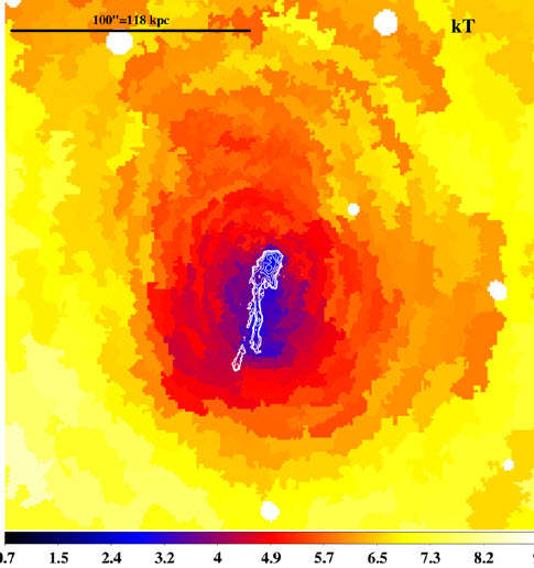 Temperature map of Abell 1795: Cooler flow towards the core. Studies from observations in X-rays by S. Ehlert et.al ,2015