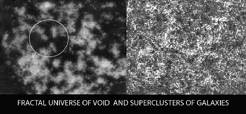 In the universe around us we see two distinctly different characteristics which lie in opposite directions from us. On one side it is dominated by dark void where few galaxies exist. These lonely structures are pushed away from the void. On their way they form clusters. These clusters in turn form bigger clusters. Then they form even bigger cluster in a hierarchical manner. On the other side we see the opposite of the empty world: It teems with rich clusters of galaxy clusters with dense galaxy contents. On both sides triple spiral structures appear. In the void the triple-spiral is made of the “dark”. In the other region it is made of luminous matter. The clusters from the emptier world move towards the luminous world as if they are attracted by a giant luminous triple-spiral of immense dimension.