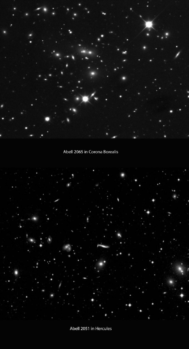 brightest among them all because it is the most nearby cluster among the ones mentioned above. The clusters are mainly filled with spiral galaxies similar to the lonely galaxies seen inside the “void”.
